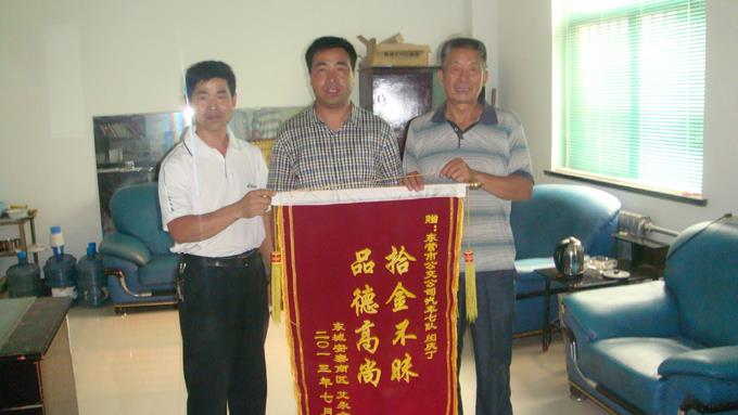 7月6日下午,市公交公司汽車七隊(duì)迎來(lái)一位老大爺,一手拿錦旗,一手提著沉甸甸的禮物,來(lái)到車隊(duì)領(lǐng)導(dǎo)辦公室,感謝拾金不昧的公交車駕駛員閔慶丁師傅。
