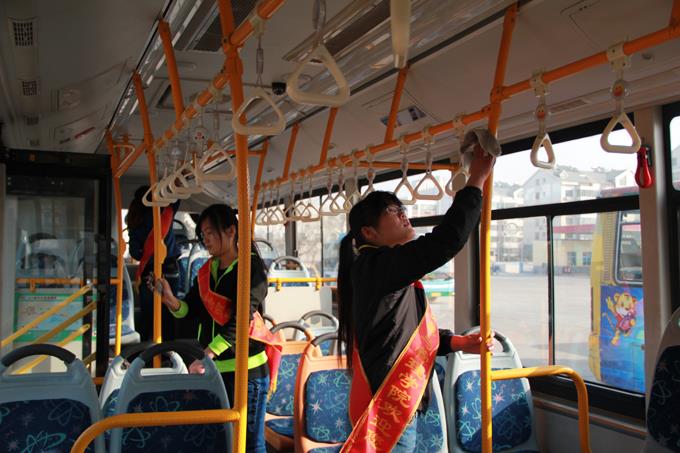 2013年3月9日上午,市公交公司汽車一隊(duì)聯(lián)合東營(yíng)市職業(yè)學(xué)院會(huì)計(jì)學(xué)院的大學(xué)生開展了義務(wù)活動(dòng)。參加義務(wù)活動(dòng)的38人分為兩個(gè)活動(dòng)小組,一組乘坐公交車上路為老、弱、病、殘、孕等特需乘客服務(wù),以及在站點(diǎn)疏導(dǎo)乘客;另一組在汽車一隊(duì)駐地幫助擦洗公交車,清掃車廂衛(wèi)生。大家工作起來(lái)井然有序,有條不紊,都認(rèn)真投入其中,尤其活躍在車廂為乘客服務(wù)的志愿者們,更是得到了乘客的一致好評(píng),成為公交車上一道亮麗的風(fēng)景。