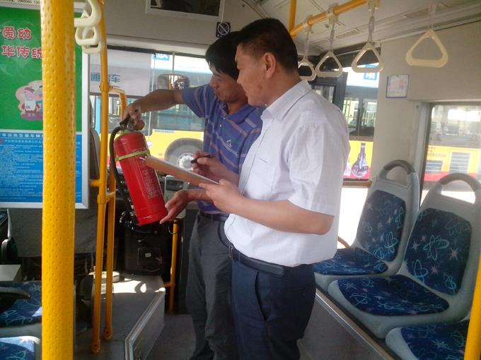 市公交公司汽車一隊對營運車輛進行防火大檢查