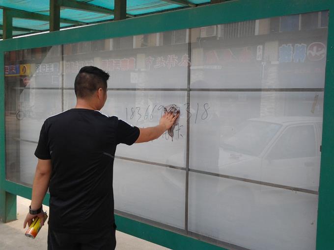 市公交公司汽車二隊定期清理公交站點小廣告