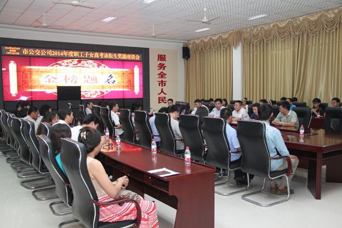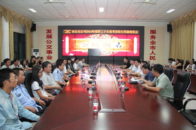 8月28日晚,市公交公司舉行了2014年度職工子女高考錄取生獎勵座談會,為今年高考錄取的職工子女進行獎勵。公司經理朱新民出席,受獎勵的職工及子女參加。