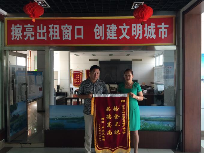 6月24日,市民肖先生拿著一面寫有“拾金不昧,品德高尚”的錦旗來到市公交出租汽車運營中心,表揚出租車駕駛員岳偽仿,夸其是一位拾金不昧的好同志。 原來,6月22日肖先生搭乘出租車從黃河鉆井到商業(yè)大廈不慎將錢包落在魯ET2306出租車上,包內有身份證、銀行卡及現(xiàn)金10000多元,出租車駕駛員岳偽仿發(fā)現(xiàn)之后立即上交運營中心,后經運營中心聯(lián)系上失主并及時歸還。為了感謝駕駛員岳偽仿拾金不昧的精神,肖先生特意送來錦旗表示感謝。