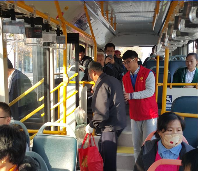 為進(jìn)一步營造文明城市復(fù)核迎測(cè)的濃厚氛圍,弘揚(yáng)“奉獻(xiàn)、友愛、互助、進(jìn)步”的志愿服務(wù)精神,踐行常態(tài)化志愿服務(wù)機(jī)制,市公交公司于10月31日上午聯(lián)合職業(yè)學(xué)院開展了志愿服務(wù)活動(dòng)。志愿服務(wù)活動(dòng)主要是引導(dǎo)乘客有序乘車,幫助老弱病殘?jiān)械忍厥獬丝蛢?yōu)先乘車及主動(dòng)為老弱病殘?jiān)凶屪虺珜?dǎo)乘客保持車廂衛(wèi)生以及引導(dǎo)公交車輛規(guī)范??康鹊?。