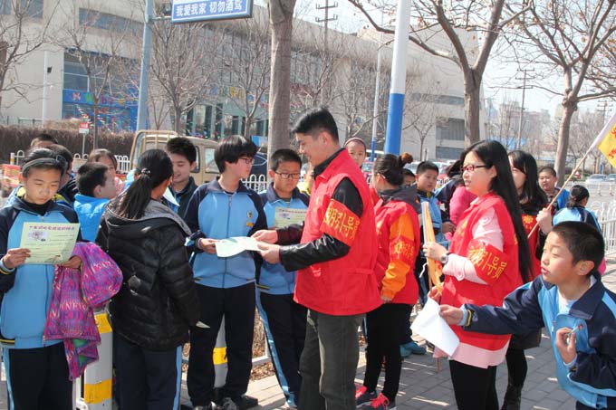 志愿者利用放學時段在實驗中學公交車站點向等車的同學們發放文明安全乘車宣傳單,耐心地向同學們宣講安全乘車和文明乘車知識,號召同學們做到自覺排隊、文明乘車,建立良好的乘車秩序,展示良好的精神風貌,為美麗幸福新東營的建設做出積極的貢獻。