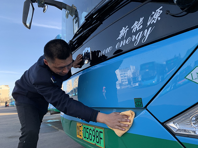 臘月二十三是農歷的小年,天氣晴好。東營市公交公司汽車一隊的停車場里,多名職工和保潔員在清潔公交車輛衛生,干干凈凈迎接春節。