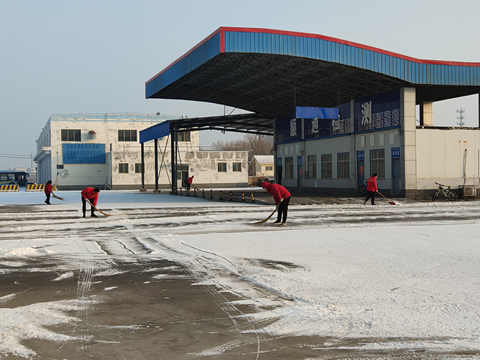 經過一個多小時的奮戰,大家將站內的主要出入口和道路的積雪全部清掃干凈。雖然大家弄濕了鞋子、弄臟了衣服,但是看著為客戶開辟的這條暢通之路,每個人臉上都洋溢著自豪的笑容。