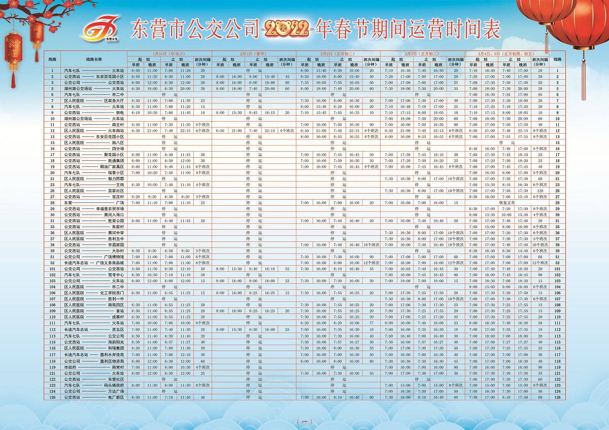 東營市公交公司 2022 年春節期間運營時間表,新鮮出爐