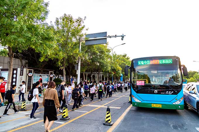 為平穩(wěn)有序開學保駕護航,精準對接學生家長需求,努力營造家長放心、學生滿意、社會認可的安全出行環(huán)境,東營公交依托東營智慧公交系統(tǒng)推出“定制公交”助學服務,助學服務自上線以來,深受學生家長的喜愛。2022年8月累計收到通學服務相關(guān)需求接近萬條,東營公交快速響應,根據(jù)前期收集到的學生通學出行需求,統(tǒng)籌整合公交運力資源,規(guī)劃開通30條助學“定制公交”線路,71條“專線公交”,每日安排運行262個班次,點對點服務學生出行,助力學生直達校園,全力保障學生出行。同時為更好地守護學子出行,公交駕駛員發(fā)車前均會進行酒測和體溫檢測,對運營車輛進行全面檢查,車輛返回場站進行消毒清理,在全面做好各項防疫措施的同時,確保學生們的乘車安全。