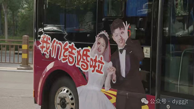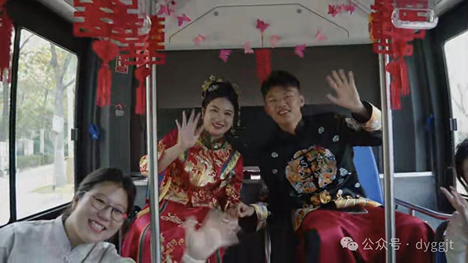 這兩輛公交車跟隨著迎親隊伍,高調得“秀恩愛”,吸引了無數的目光和祝福。寬敞的車廂,可以輕松容納一眾親朋好友,笑聲、祝福聲此起彼伏,為新人的幸福時刻,增添了更多的溫馨色彩。