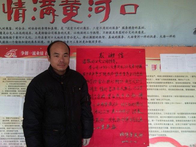 2010年12月13日下午,勝利油田稠油廠保衛處楊德華先生頂著紛紛的雪花、把一封表揚信送到了市公交公司汽車三隊,感謝三隊駕駛員孫長來拾金不昧的事跡。