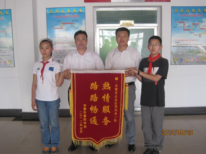 5月23日上午,市晨陽學校師生三人拿著一面寫有“熱情服務(wù)、路路暢通”的錦旗來到市公交公司汽車一隊,感謝車隊在5月17至18日為期兩天的旅游包車中,為晨陽學校兩千多名師生提供的熱情、周到、優(yōu)質(zhì)的服務(wù)。對近幾年公交服務(wù)質(zhì)量的不斷提升表示稱贊,并向公交廣大干部職工表達深深的敬意。