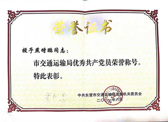 燕增鵬榮獲”市交通運輸局優秀共產黨員“榮譽稱號