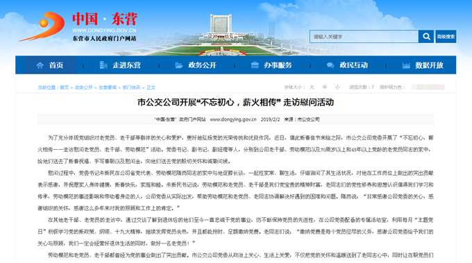 2019年2月3日東營市政府網站報道